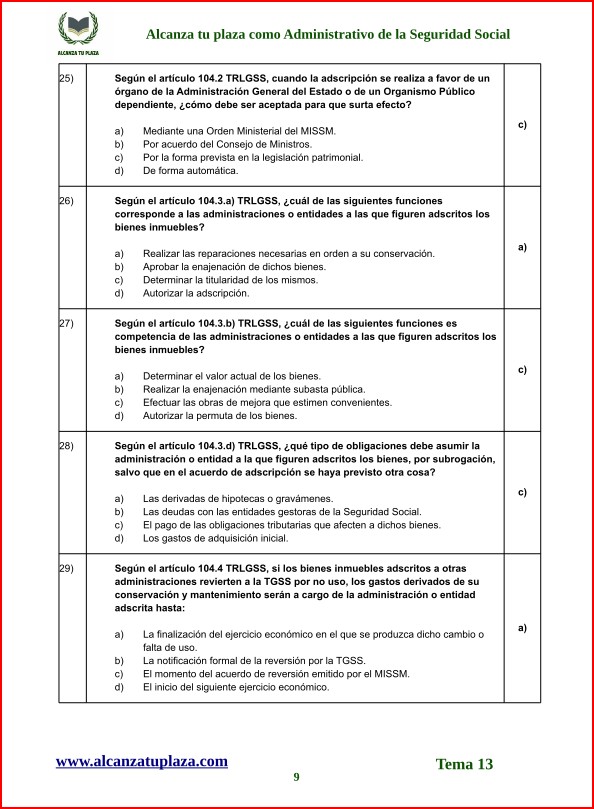 • 102 preguntas, justificadas con la respuesta y encabezadas con el artículo y la ley correspondiente.