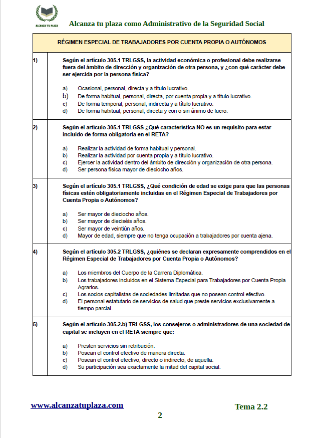 • 123 preguntas, justificadas con la respuesta y encabezadas con el articulo correspondiente.