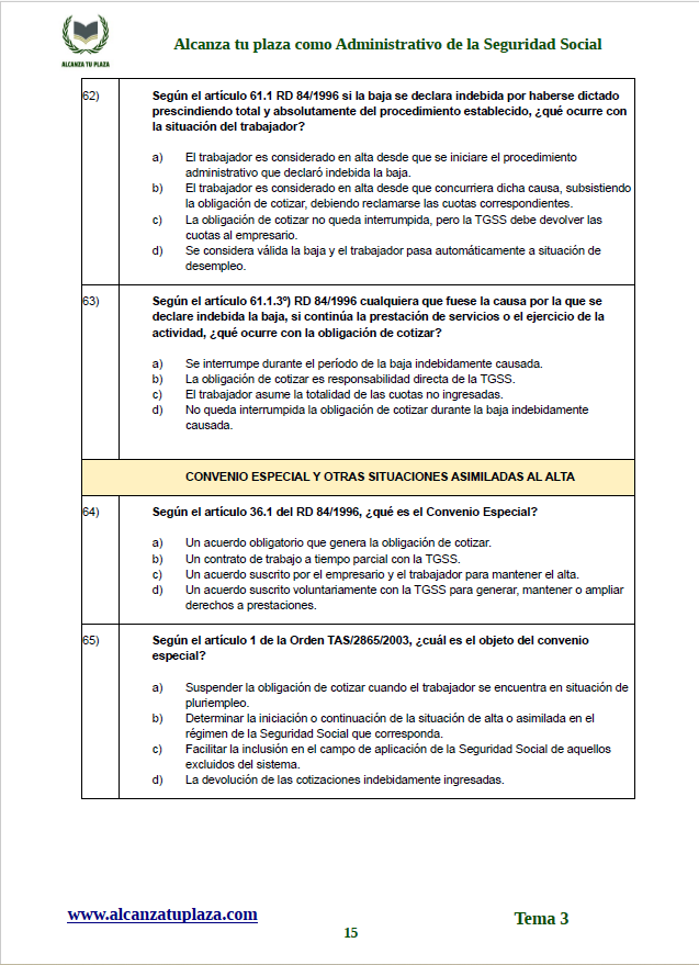 • 126 preguntas, justificadas con la respuesta y encabezadas con el articulo correspondiente.