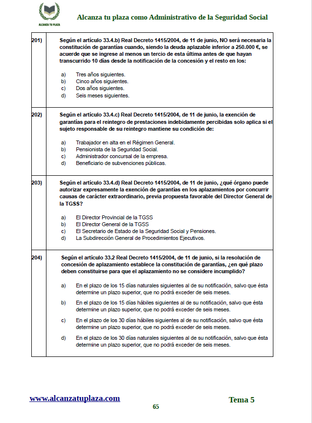 • 245 preguntas, justificadas con la respuesta y encabezadas con el articulo correspondiente.